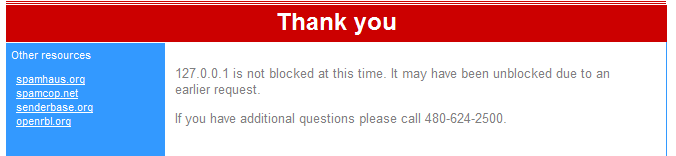 [su_pullquote align=”right”]If you are having sending problems, always check your server’s IP addresses in a blacklist lookup tool. I like the the one at MXToolbox.com[/su_pullquote]GoDaddy’s unblock request form includes some clues about filtering. On the left hand side, the include links to: